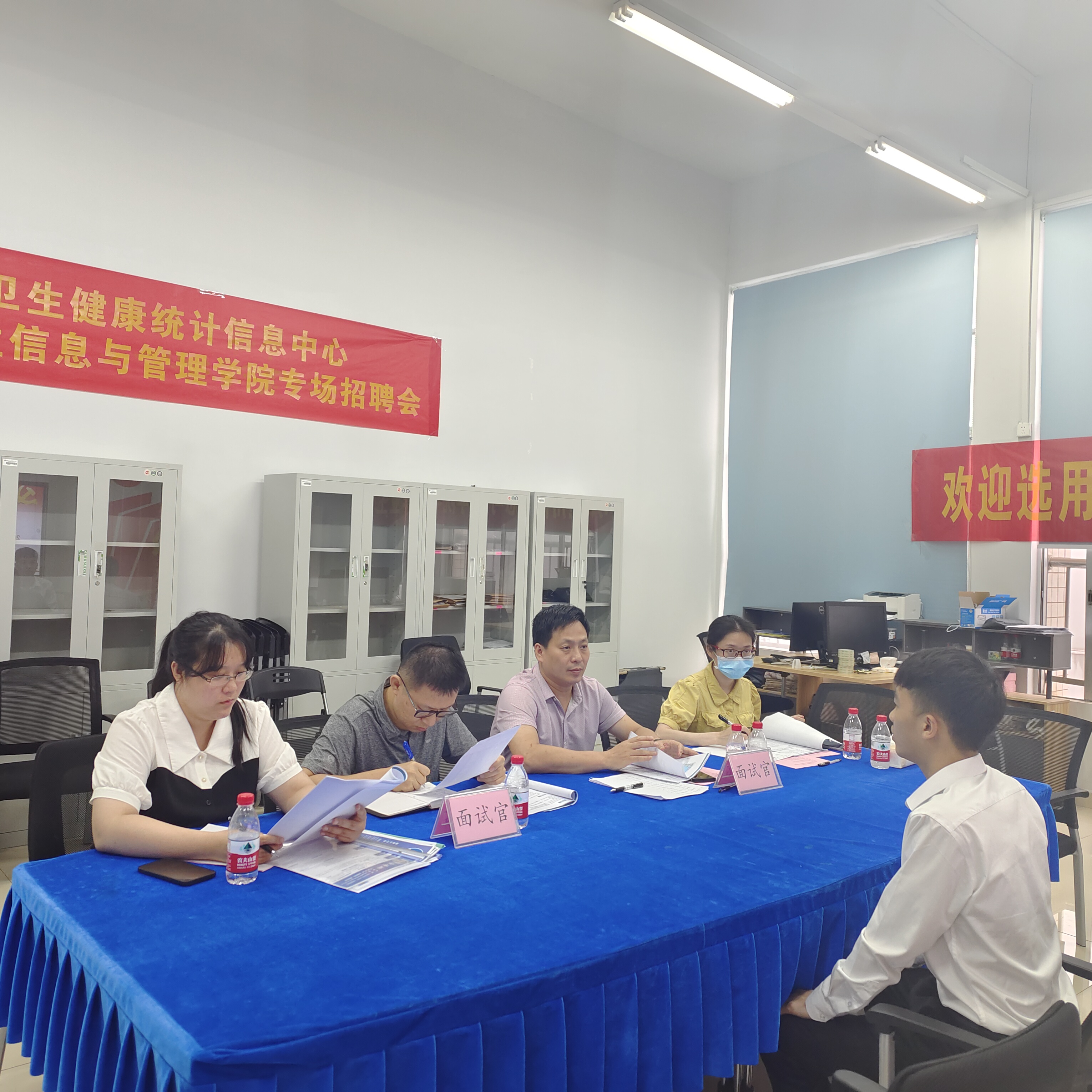 为进一步扎实开展访企拓岗促就业专项行动,抢抓毕业生离校前求职关键期,全力促进2022届毕业生充分就业, 2022年6月14日下午,SUNBET申博在人文楼401室举办自治区卫生健康统计信息中心专场招聘会。SUNBET申博陈榆书记、何慧敏经理、徐晓君副书记、张新花副经理参加了专场招聘会。