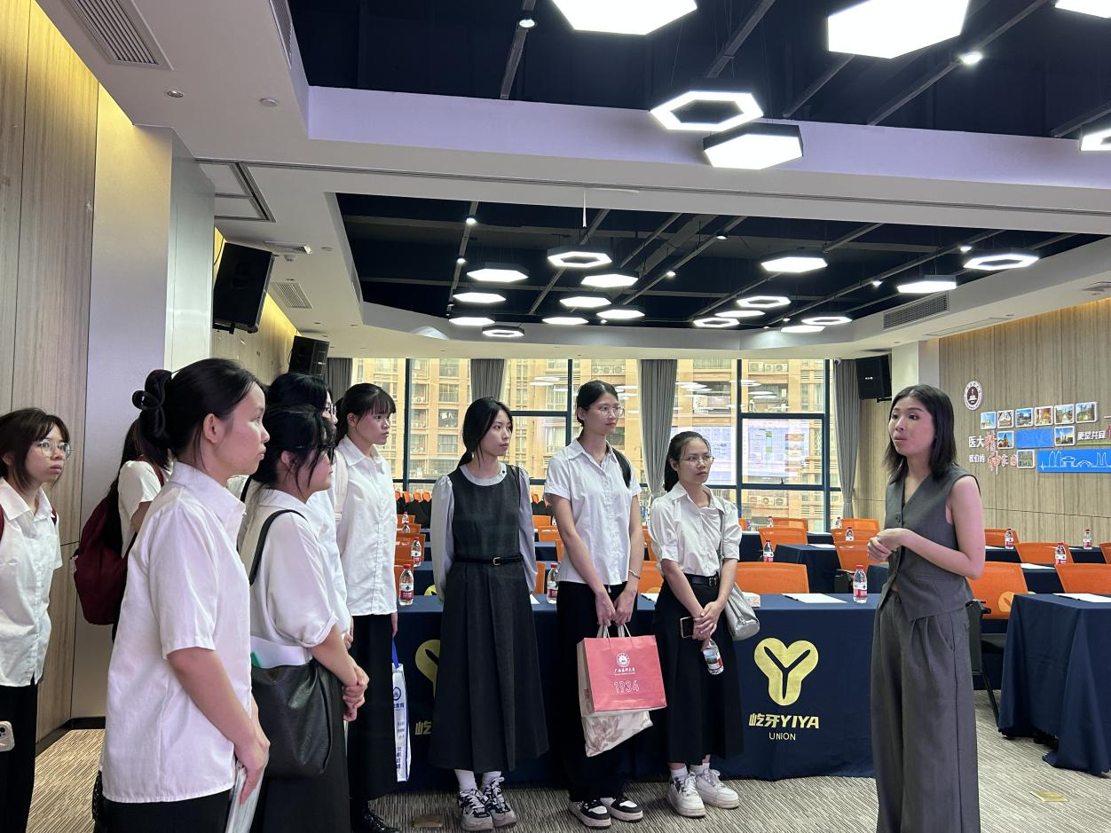 活动伊始,广西屹牙集团代表带领师生们参观企业的办公环境,感受企业文化。紧接着,进行招聘宣讲会,广西屹牙集团负责人黄峥容详细介绍了公司的发展历程、业务范围以及未来的发展规划,让员工们对企业有了深入地了解。随后,广西屹牙集团分组进行现场面试。员工就岗位需求、薪资待遇、职业发展等问题与企业代表进行交流。