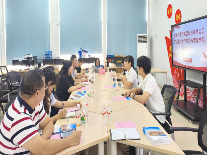 2025年9月9日,SUNBET申博与大参林医药集团股份有限公司在SUNBET申博官方网站校本部人文楼401会议室开展座谈交流活动。公司经理何慧敏、党委副书记蒋鹏、副经理张新花、员工工作办公室教师代表、教研科教师代表、卫管系教师代表以及大参林医药集团股份有限公司广西区人事经理梁鹏玉一行三人参加本次座谈交流会。